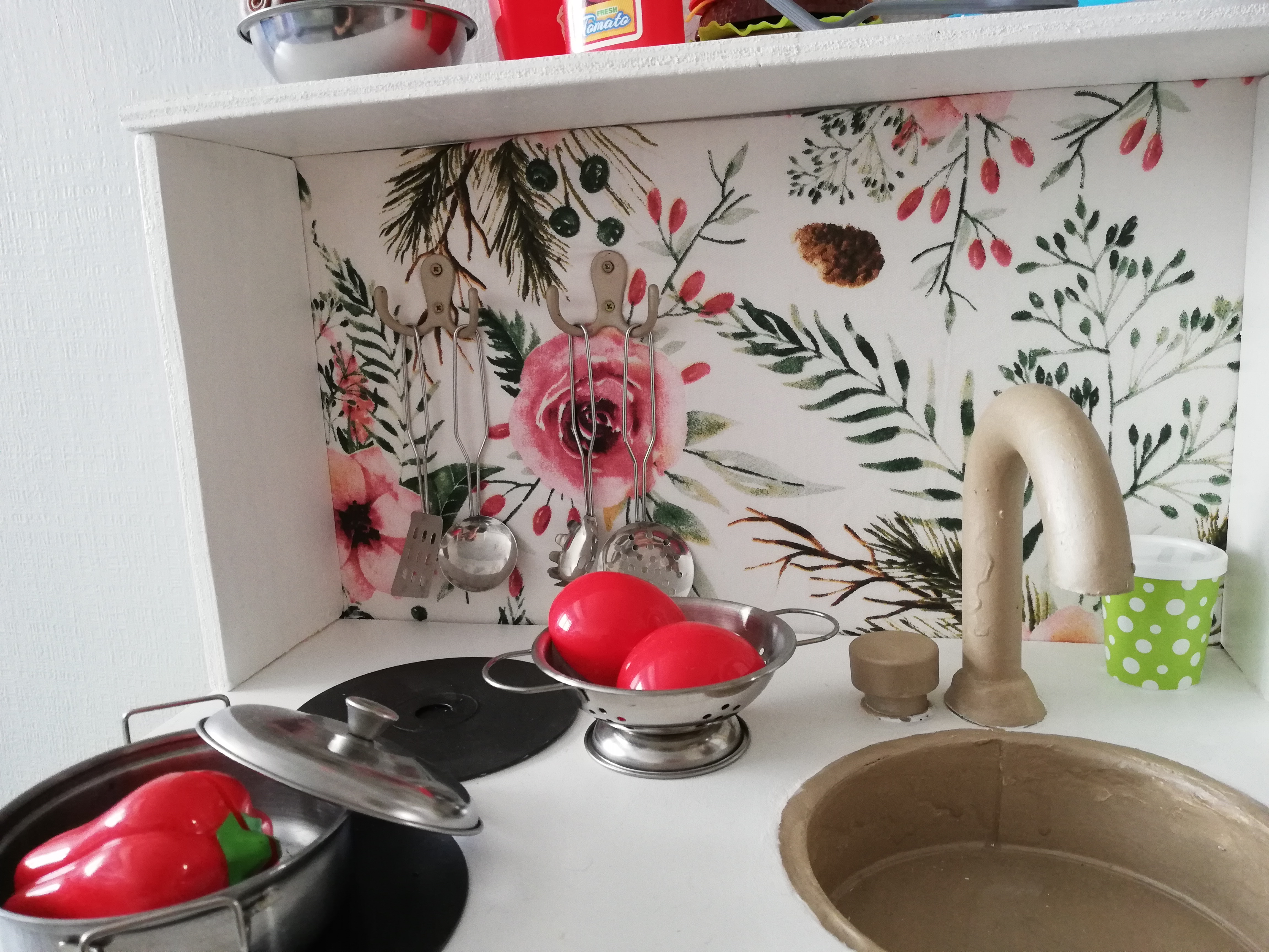 Así es como ha quedado mi cocinita, aunque he visto muchos diseños con otros colores que quedan muy bonitas también, así que tienes miles de posibilidades.